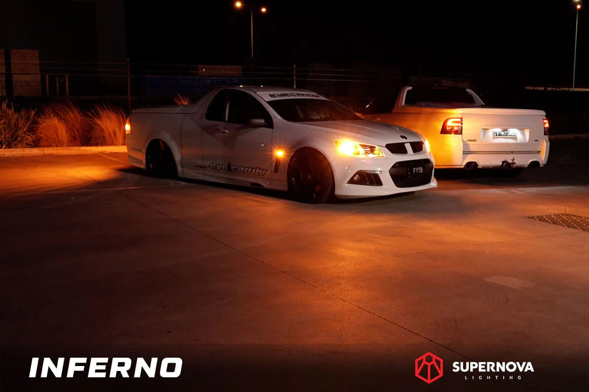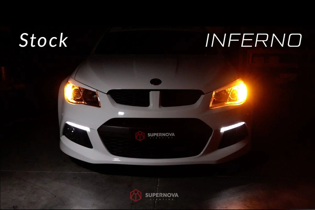 Modern cars including the VF Commodore LED headlights are changing to LED, for indicators it's not only a case of increased brightness but a noticeable aesthetic of precision. LED indicators are instantly illuminating and turn off 100% in-between flashes. Where as the stock Halogen indicators have a slow fading effect where they ramp up and fade out in-between flashes. This exterior pack brings your VF to life at night with ultra bright indicator LEDs and 6000K hyperwhite license plate LEDs