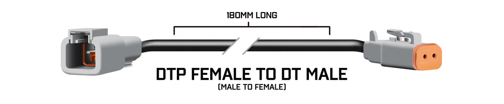 The ALTIQ™ DTP to DT Adapter allows you to seamlessly connect a high-current DTP output to a standard DT-equipped light or accessory, without modifying your wiring harness. Built using heavy-duty 12-gauge wire and genuine sealed connectors, it provides a safe, plug-and-play solution when stepping down from DTP to DT connections.