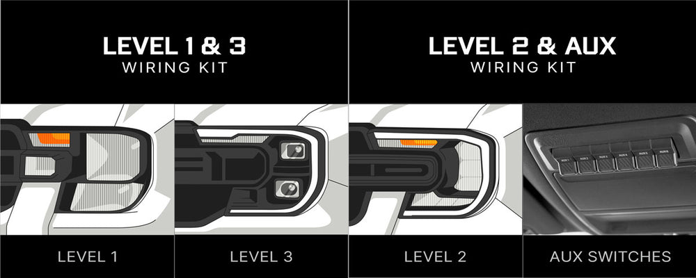 From the Raptor to the Ranger and Everest — every trim, this system is built to fit. Whether you're running halogens, matrix LEDs, or factory AUX switches, our plug-and-play wiring kits are matched for Level 1, 2, 3 and AUX-equipped models. No cutting. No splicing. Just seamless integration, installed in under an hour.