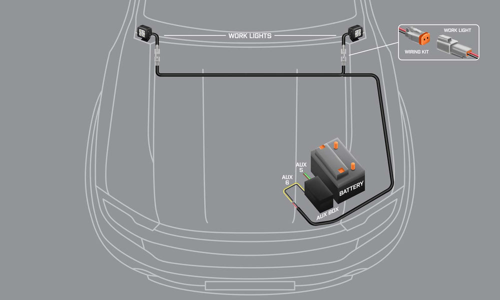 - Pre-Configured for Simplicity: The kit is designed for quick and easy installation, connecting directly to the preinstalled factory wiring, specifically Auxiliary 5/6, located in the engine bay near the battery.