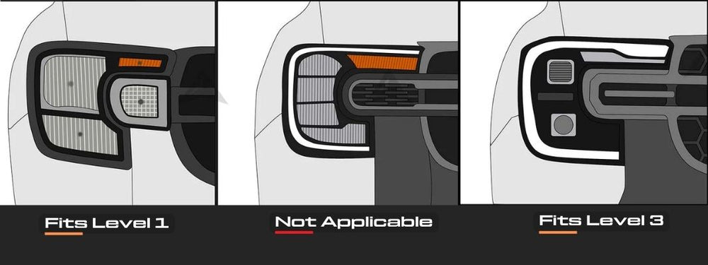 Fits Ford 2023+ Next Gen Ranger, Everest and Raptors with Level 1 & 3 Headlights only.