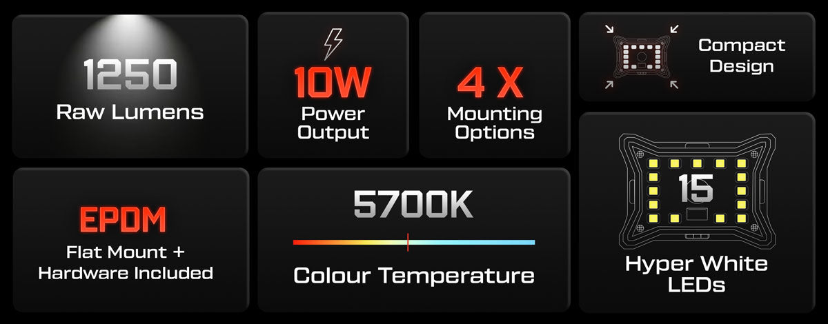 Designed for flexible mounting, the Rock Light Pro can be surface-mounted practically anywhere, with wiring options that allow feed-through or flush mounting for a clean, seamless setup. Customise your lighting with easily interchangeable Lexan optic covers, letting you switch between white, amber, red, green, or blue to suit any environment. With IP69K-rated waterproof and dustproof durability, the Rock Light Pro withstands extreme conditions, backed by ALTIQ’s 10-year warranty.