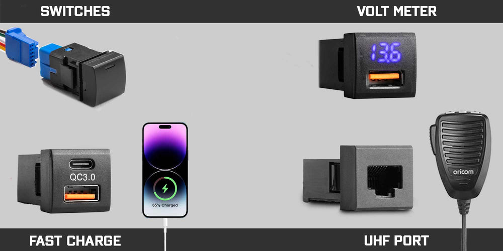 USB C Fast charging, UHF RJ45 Access port and Battery Volt Meter now available. (Sold Separately.)