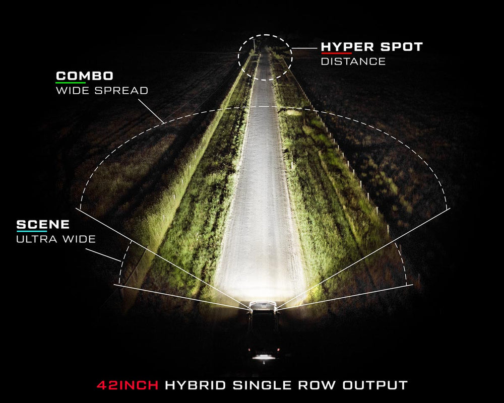 While previously, you would need to choose a light bar for one type of road and be left in the dark on others, we have taken the unconventional route to provide a light bar that provides optimal performance across all roads. Equipped with 3 different reflectors providing driving light distance, a wide throw of flood and a hyper flood that you would normally only get from our work lights, the Hybrid is designed to light up every angle.