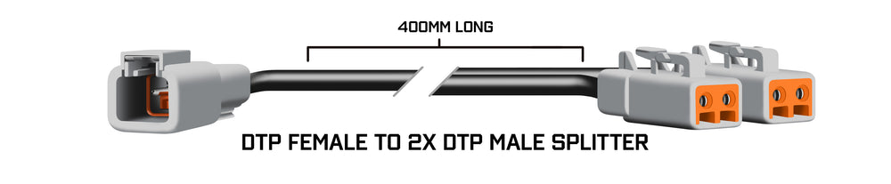 The ALTIQ™ DTP Y-Splitter allows a single high-current DTP output to be cleanly split into two separate DTP power outputs, making it ideal for running dual lighting accessories from one wiring harness. It eliminates the need for custom looms or spliced wiring, keeping your setup modular, serviceable, and OEM-clean.