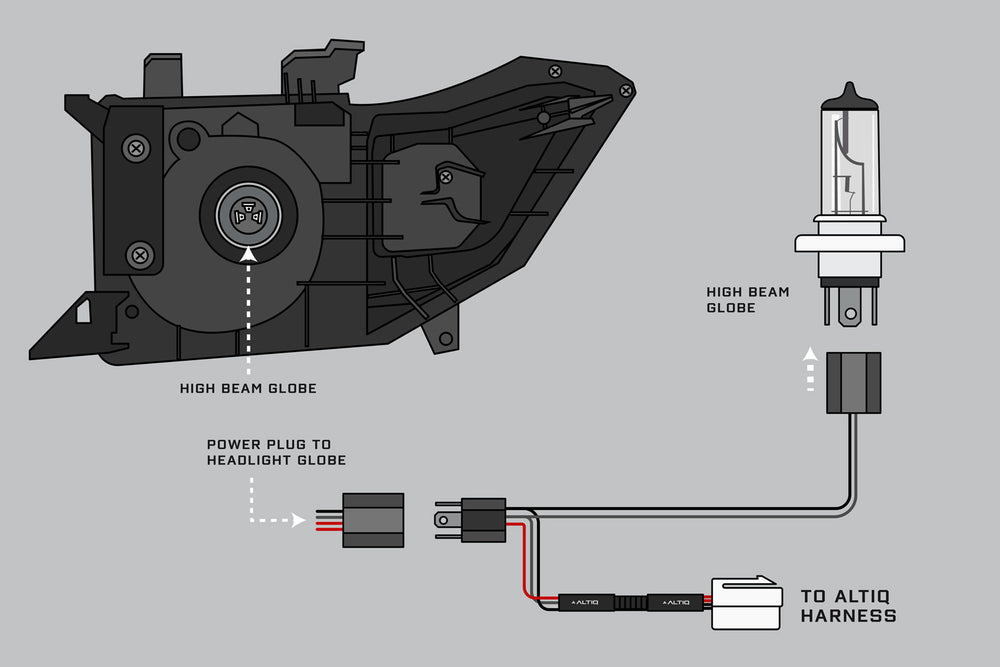 Unlock high beam activation the easy way—no cutting, no splicing, and no guesswork. The ALTIQ™ Halogen Piggy Back Adapter is engineered to interface directly with a wide range of halogen bulb types, giving you a seamless high beam trigger source for your driving light wiring harness.