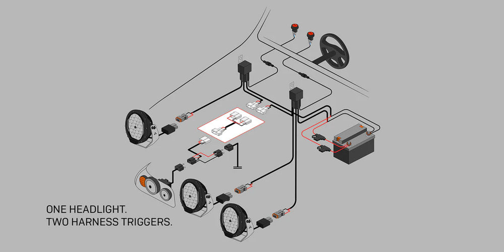 - Dual Output: Splits the output from one to two, allowing you to connect two spotlight or light bar harnesses.