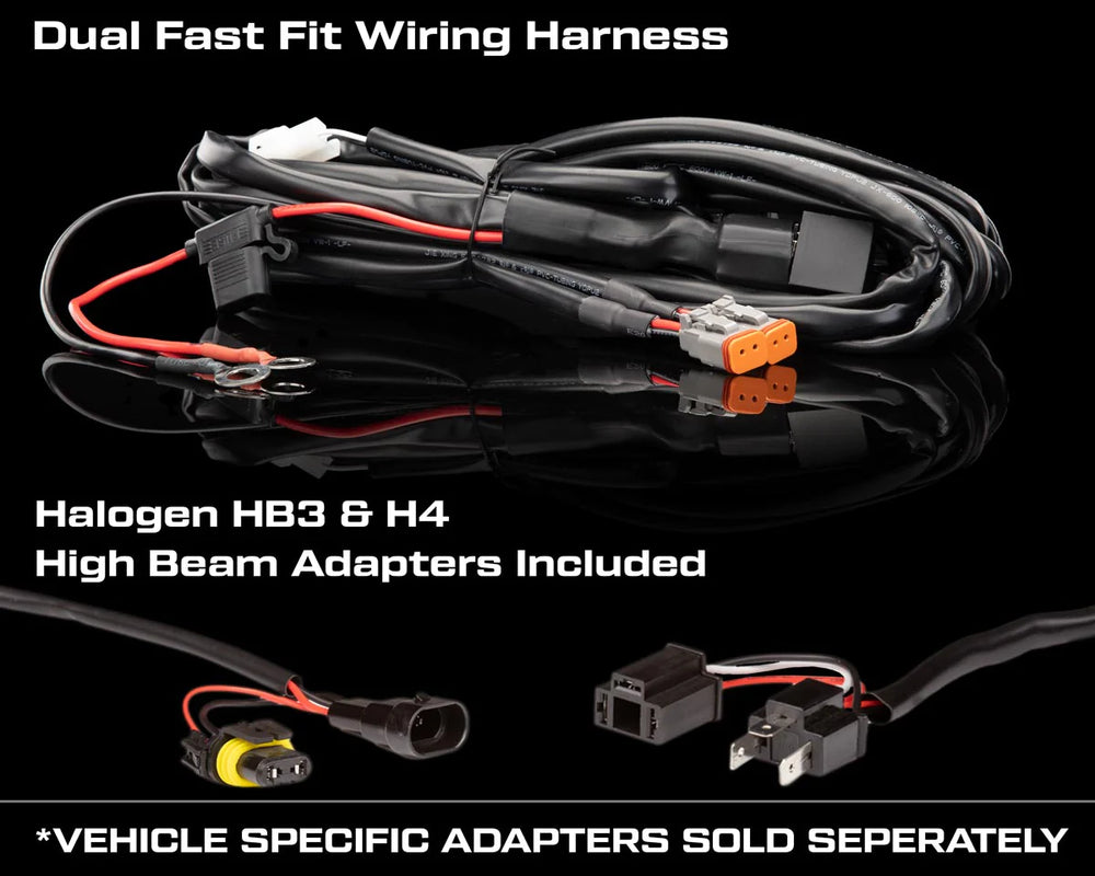 Fast Fit Wiring Harness Included - Easy plug and play installation, includes H4 and HB3 high beam adaptors
