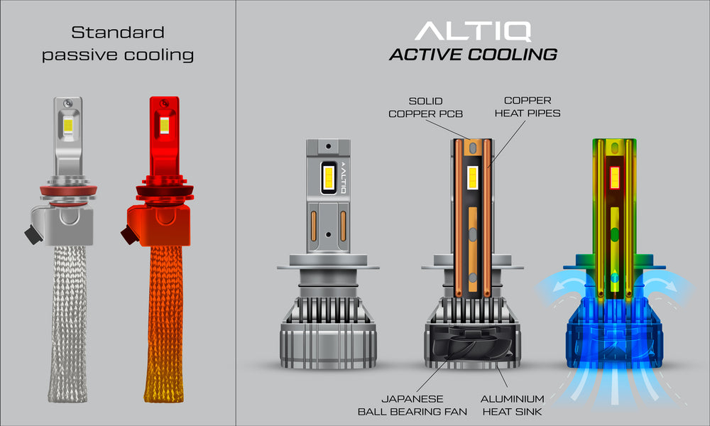 This comprehensive cooling system ensures that the V5 Kit runs cooler and more efficiently than passive-cooled alternatives, maintaining optimal brightness and extending the lifespan of the LEDs