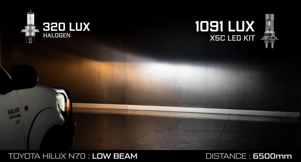 - Unmatched Compatibility: The X5 Compact’s size is equivalent to a standard halogen globe, allowing it to fit into virtually any headlight housing. Unlike larger LED conversion kits that struggle with space constraints, the X5 Compact is compatible with nearly every vehicle on the market.